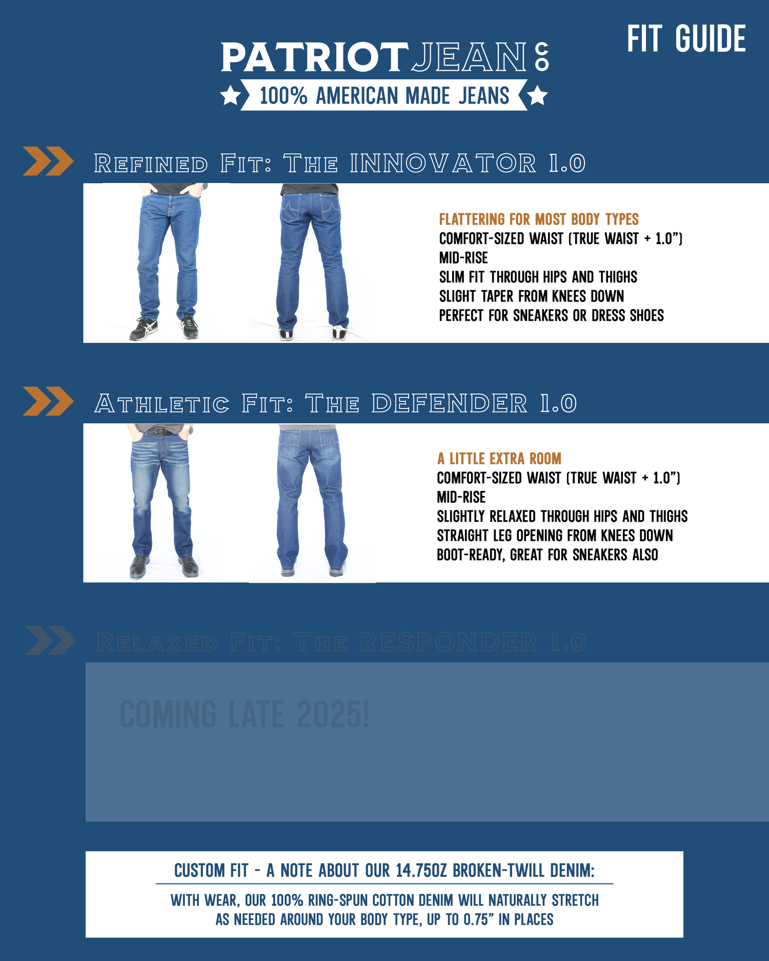 Our goal is to ensure that when you slide into a pair of Patriot Jean Co denim jeans, you experience an unparalleled blend of style and comfort. If you have any questions or need guidance regarding sizing, don't hesitate to reach out to our dedicated customer service team.